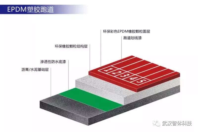 PDM塑胶跑道材料主要由EPDM彩色胶粒层与黑色橡胶底层组成,是固定式的赛场跑道材料。国际赛事标准的EPDM跑道规格是13mm(6mmEPDM彩色胶粒层,7mm橡胶层)。也可根据需求,加厚EPDM彩色胶粒层至8mm左右。全天候使用,不会因紫外线,酸雨等的污染而褪色,能长期保持其高水准的。