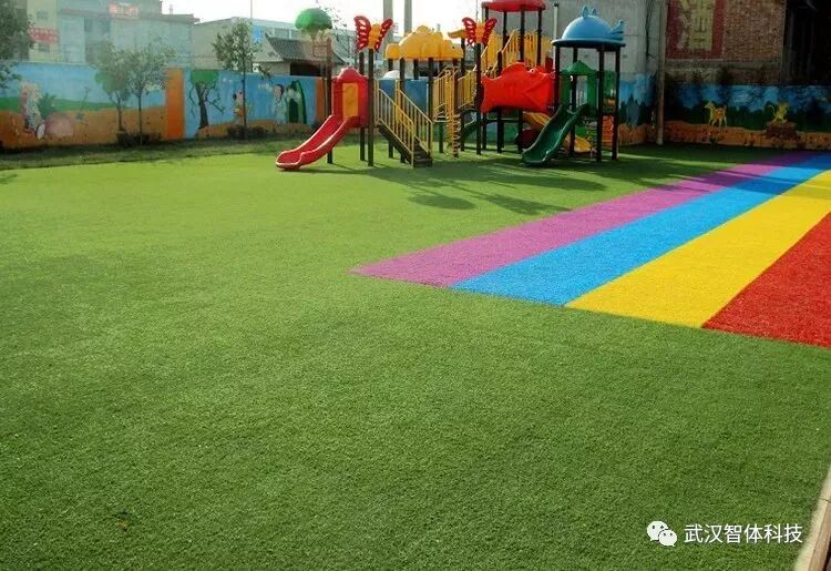 幼儿园专用人造草坪以专用设计、使用成本少、维护保养方便、环保安全、外形美观、适应性强等优势,全面覆盖和替代了传统塑胶和PVC等铺装材料。相对于普通人造草坪,它对幼儿园有更强的针对性和更好的适应性。