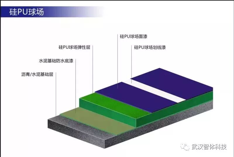 硅PU球场材料是一款绿色环保的水性材料,它是完全不含石棉,铅或水银等化合物,高度抗紫外线性能,颜色持久不褪色,经久耐用,超强耐磨,此款材料的颜色多样,有篮,红,绿等多种色泽可供选择,它的面层结构优越,有效的缓冲力能降低对运动员的伤害及疲劳,保养容易,维修成本低,在任何气候都能牢固使用,使用寿命长。